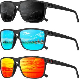 - HIGH-QUALITY MATERIALS – These square polarized sunglasses are made of high-quality plastic frames, lenses, solid metal hinges, all the details ensuring you a long time using. They are suitable for both men and women and suitable for any climate and weather conditions.