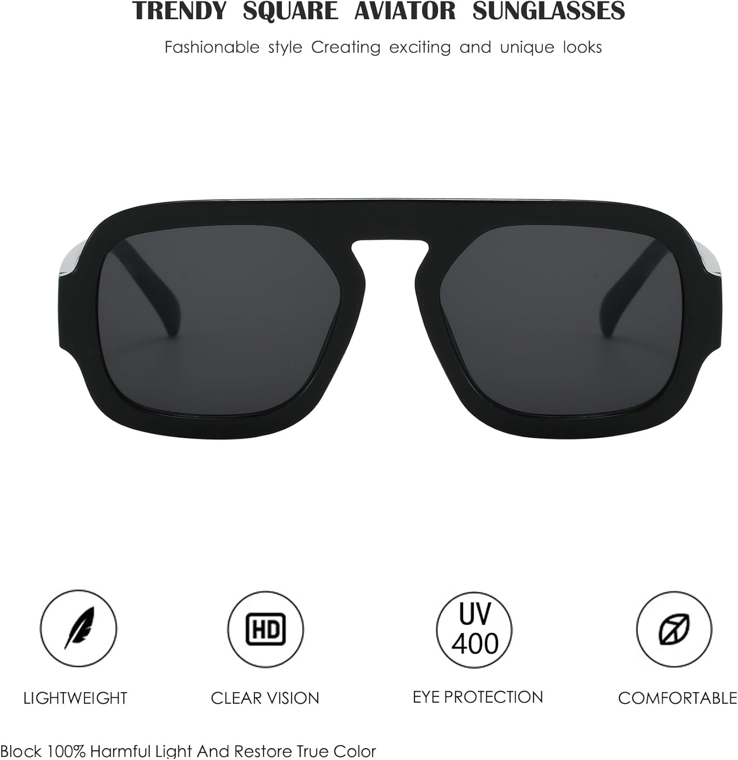 - Trendy Square Aviator Design: The sunglasses with its unique design is a great choice as a daily fashion accessory for your wardrobe collection. these sunglasses keeping up closely with the latest fashion trend. the frame can match with various facial shapes.